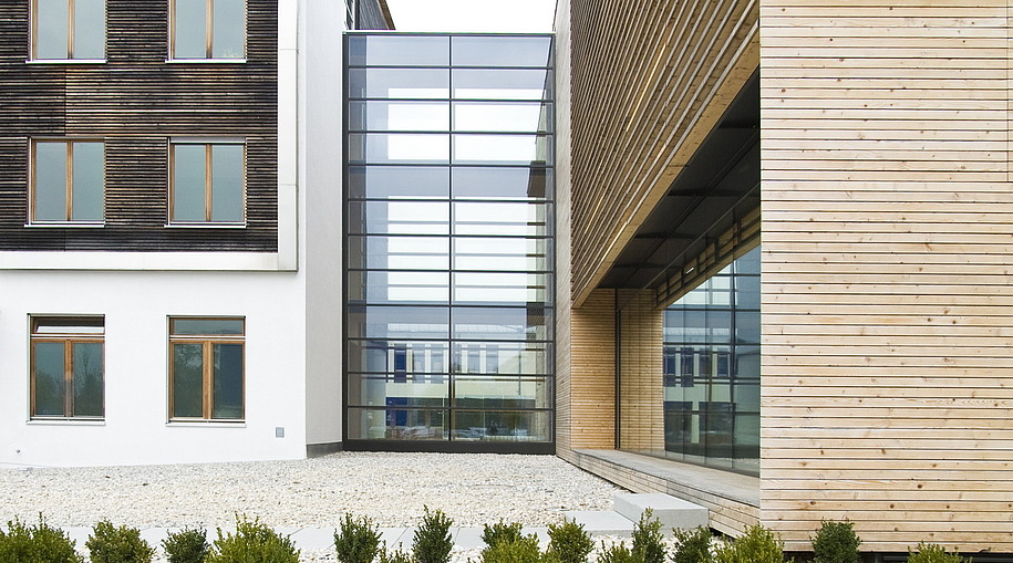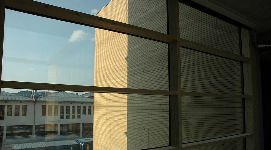 - Holzpfostenriegelfassade im Passivhausstandard, LM-Aufsatzkonstruktion
