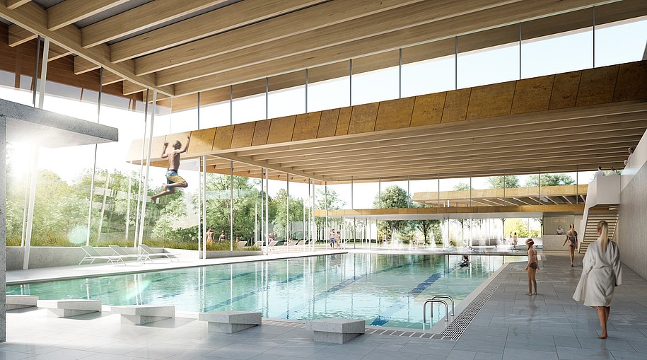 - Realisierung eines +Energie Hallenbades, hoher Anspruch an die thermische Gebäudehülle, BIPV - 100% Belegung der VHF und Pixelbelegung in den transparenten Bereichen, hoher Korrosionsschutz im Bereich Badehalle