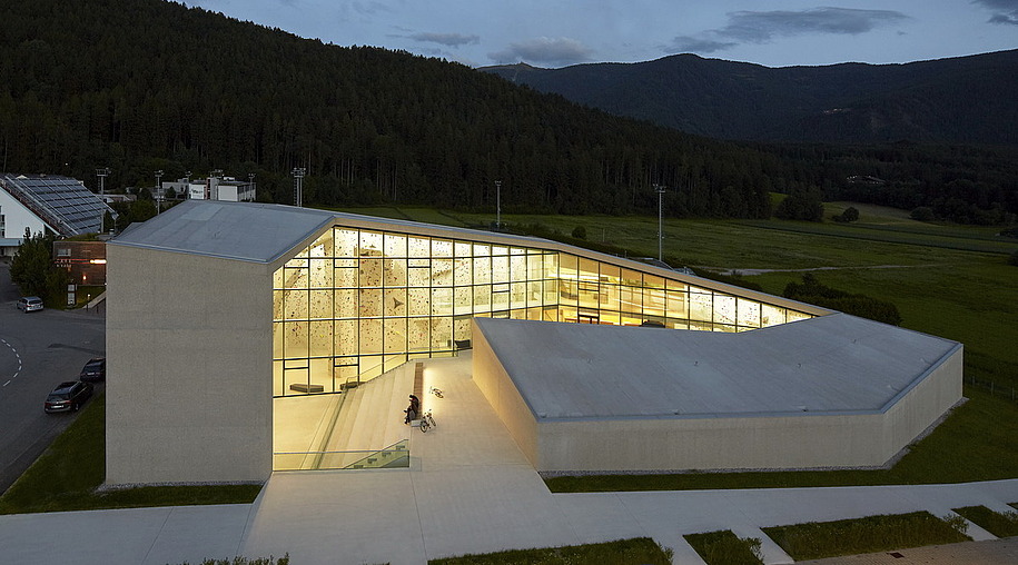 - Verglasungen (1400m²) im Regelraster 2,80x 3,75m ohne äußere Verleistung als Structural Sealant Glazing (SSG), Lüftungsflügel und Eingangsanlagen
