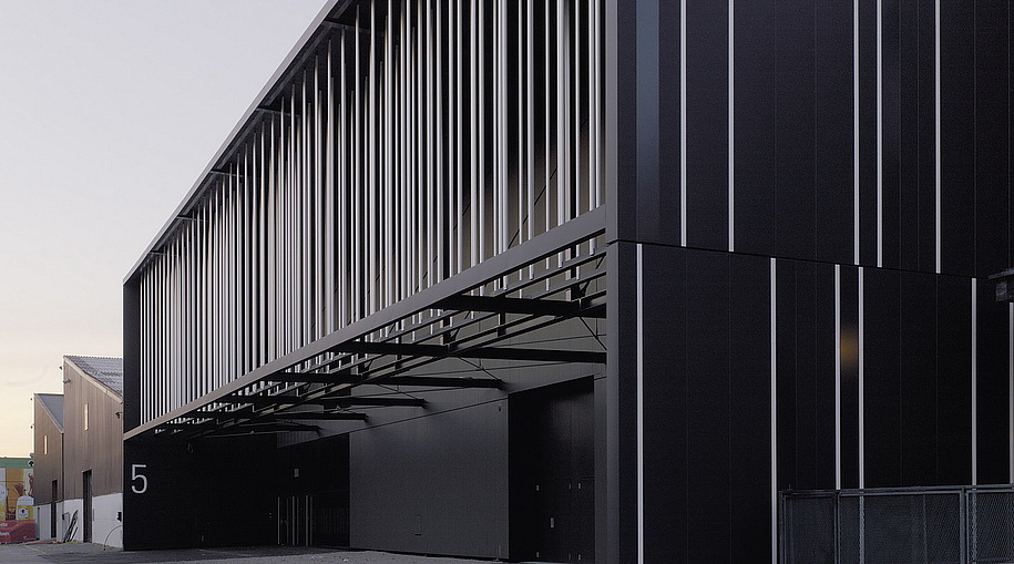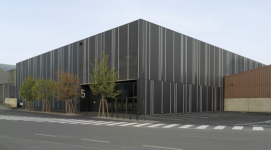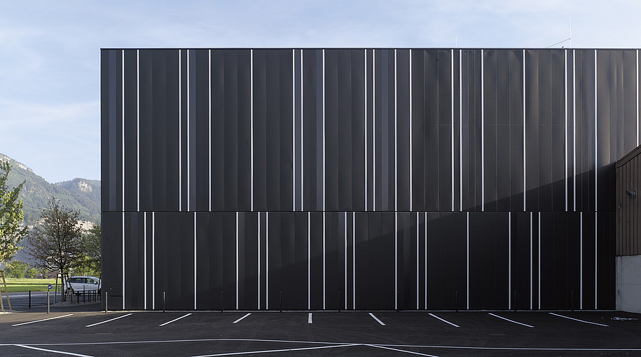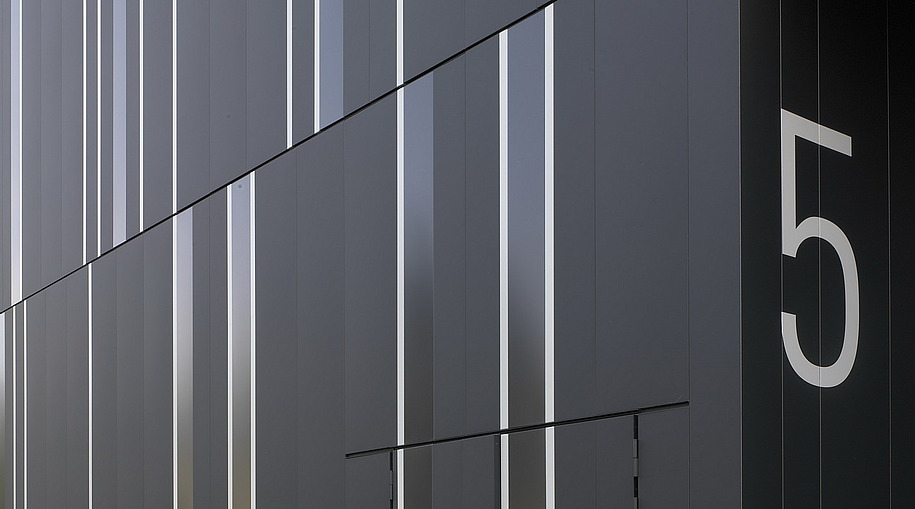 - Entwicklung eines Sonderfassadenrasters der Blechfassade, perforierte Bereiche zur Durchsicht und Lüftungszwecke, Sonderhubtore und Brandschutzdrehtore mit integrierten Fluchttüren, erhöhte Schallschutzanforderungen