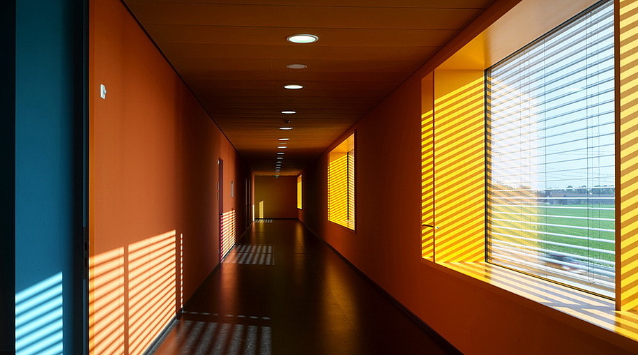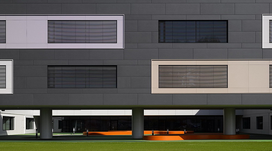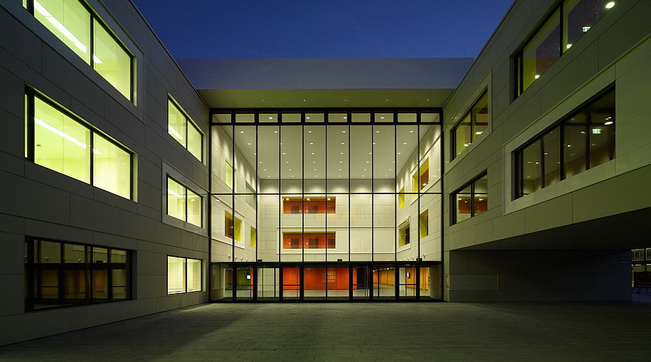 - Der Passivhausstandard verlangte ein großes Augenmerk auf die Vermeidung von Wärmebrücken, opake Wandbereiche mit Uw= 0,12W/m²K, Verglasungen Ug= 0,6W/m²K, Hallenfassade über 12m Höhe freitragend