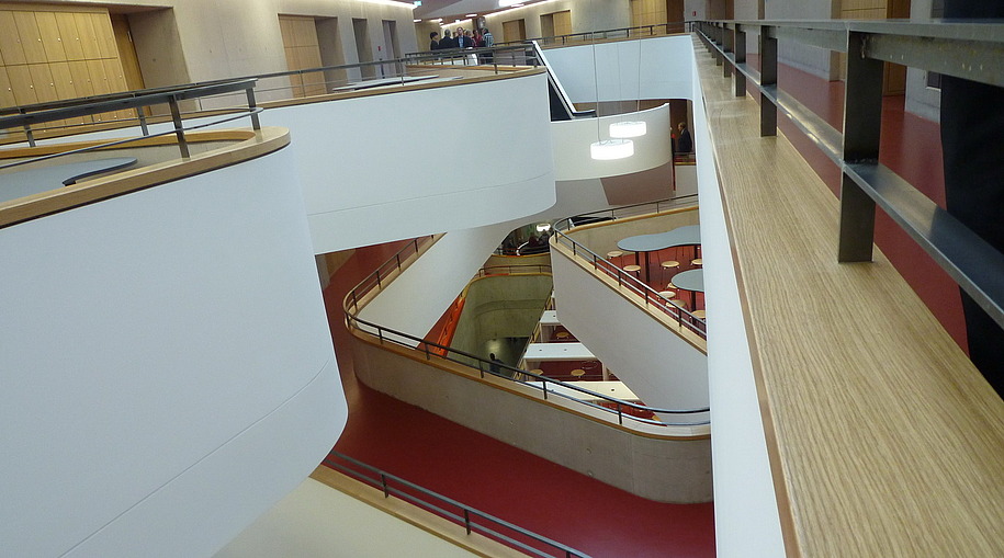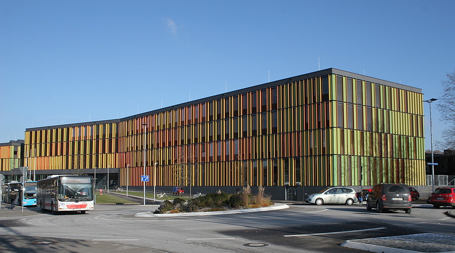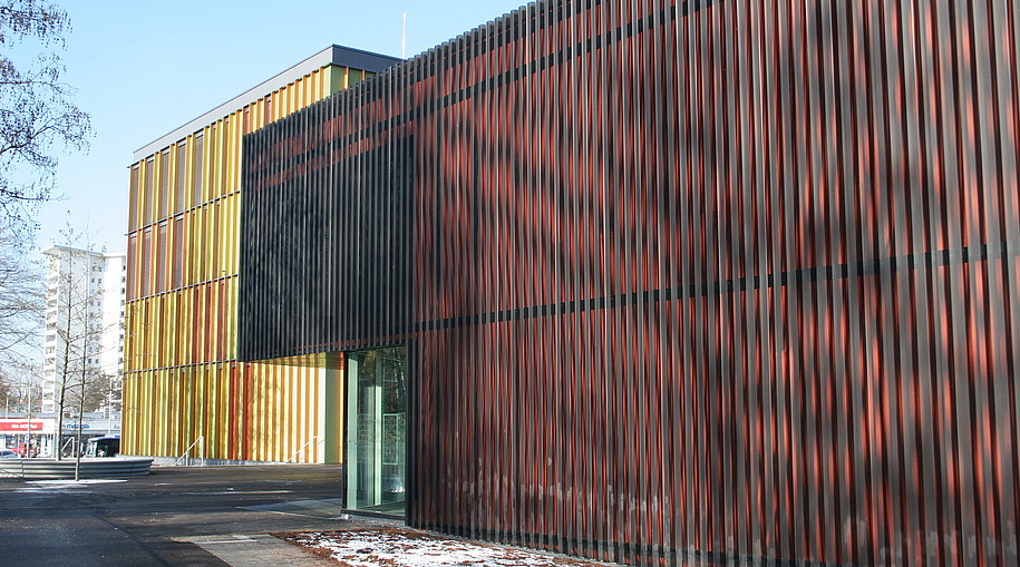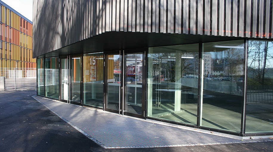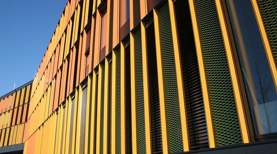 - EG Pfosten- Riegelfassade (400m²), OG PR- Lochelemente mit Einsatzflügel (1300m²), opake Fassade mit vorgehängtem Streckmetall (2800m²), Textilfassade, Brüstungsverglasung, Eingangsanlagen und Sonnenschutz